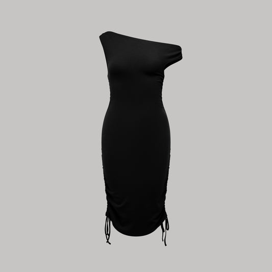 BlisSecret One Shoulder Rouched Mini Dress - Black