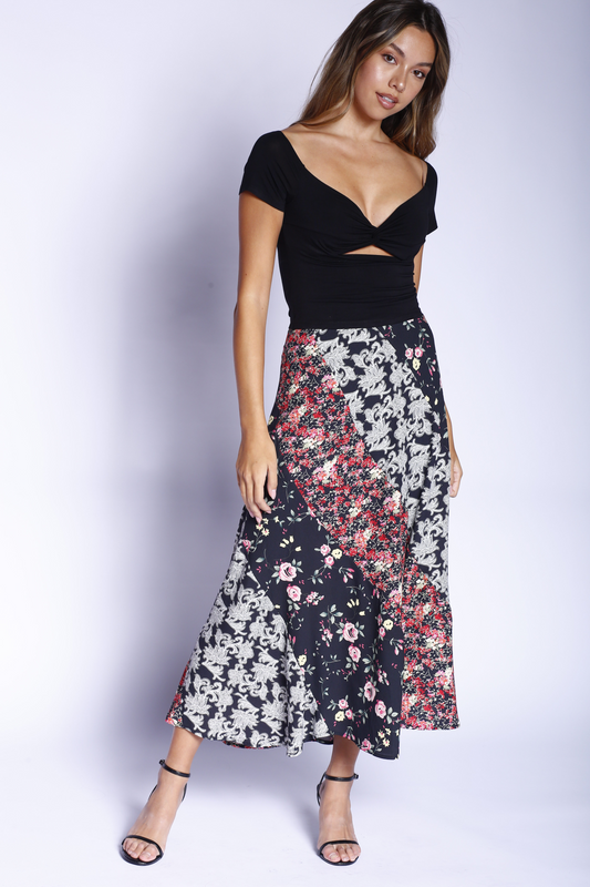 Kevan Hall X VelvetBlue Maxi Swirl Skirt - Green multi floral