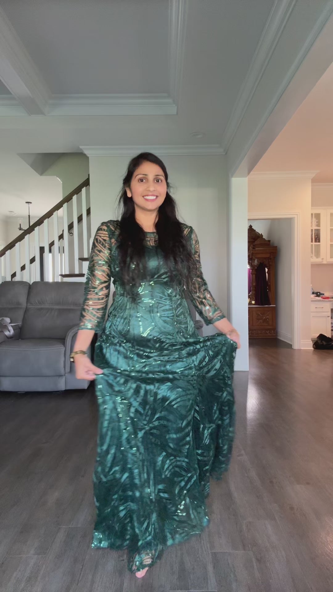 - Long sleeve dress adorned with shimmering sequins, exuding elegance.