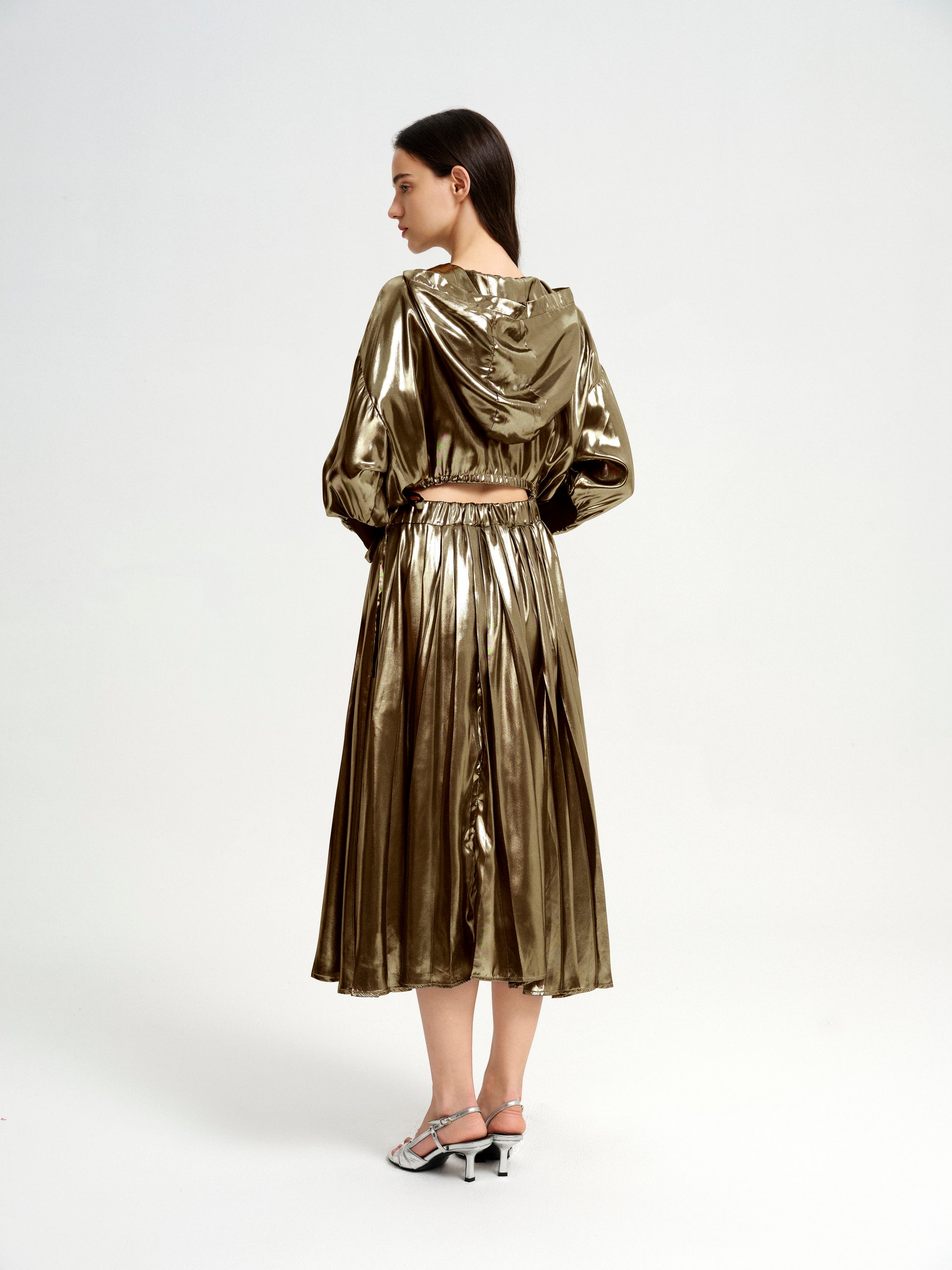 BlisSecret Gold High-Low Drawstring Hoodie & Asymmetrical Pleated Skirt