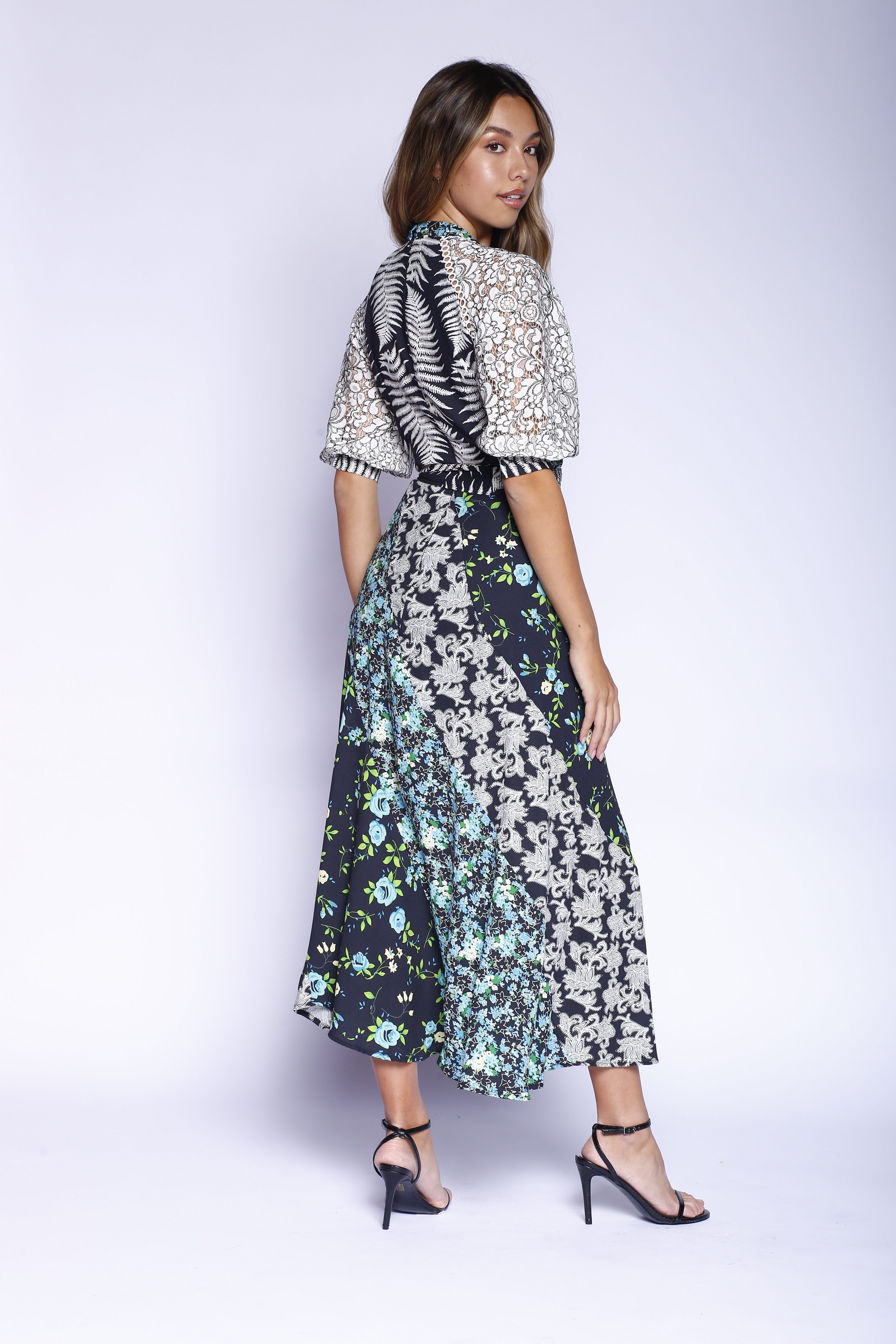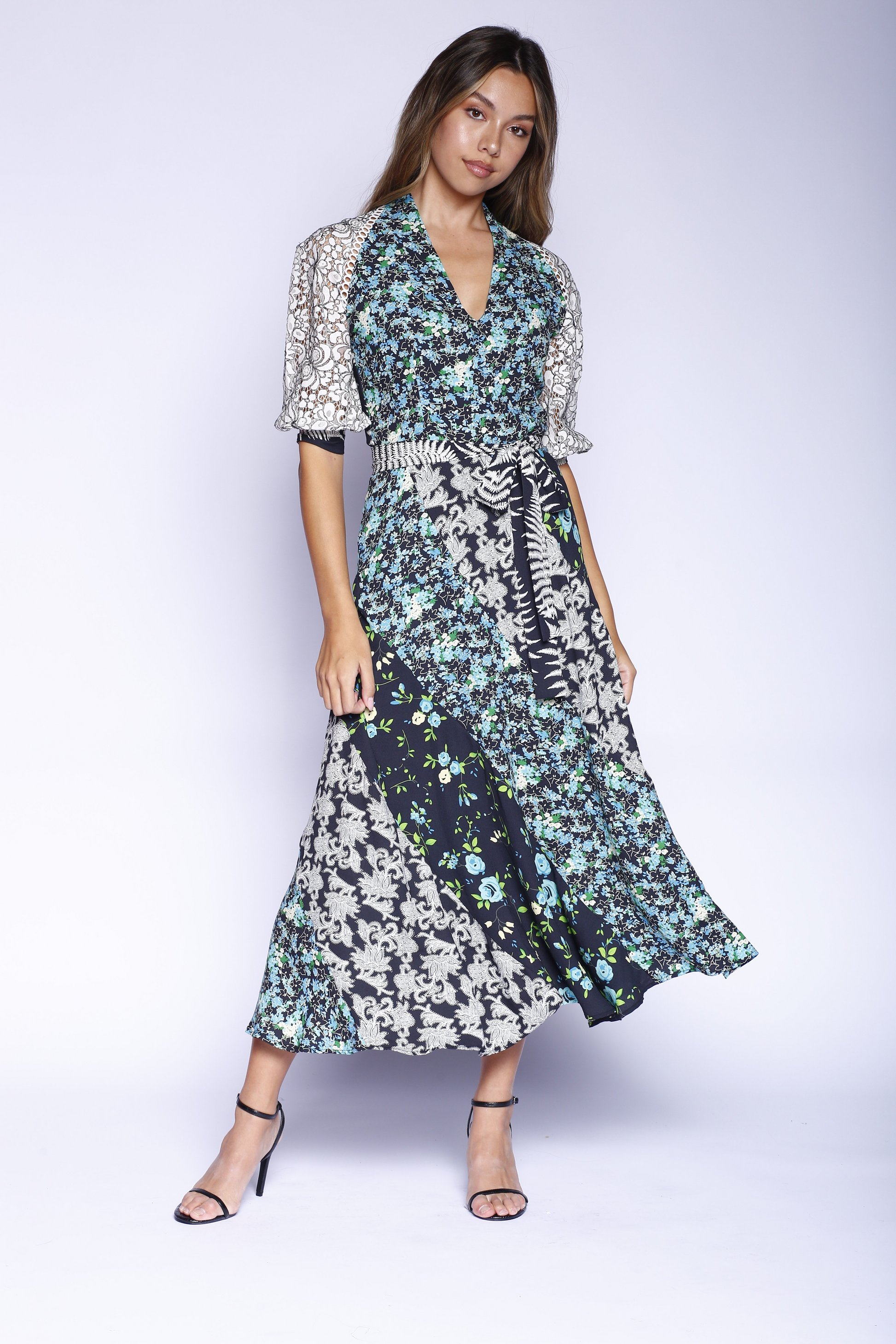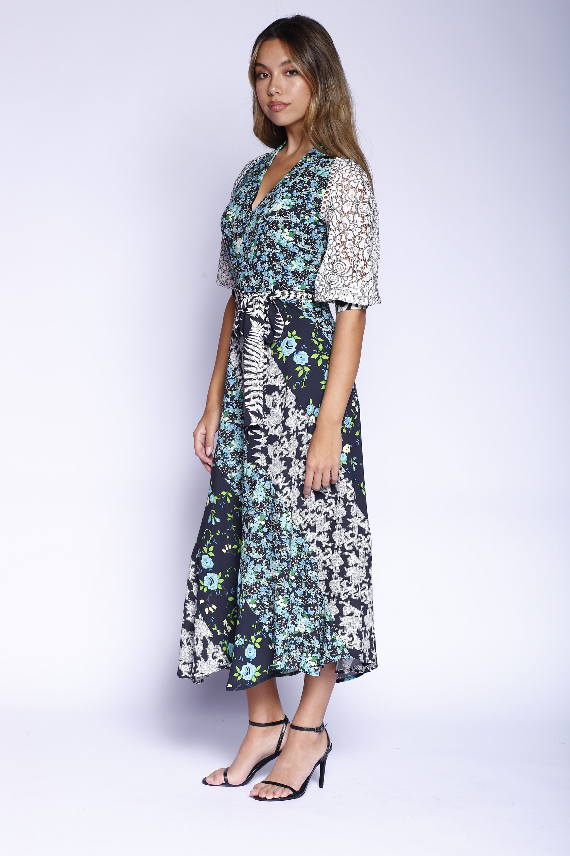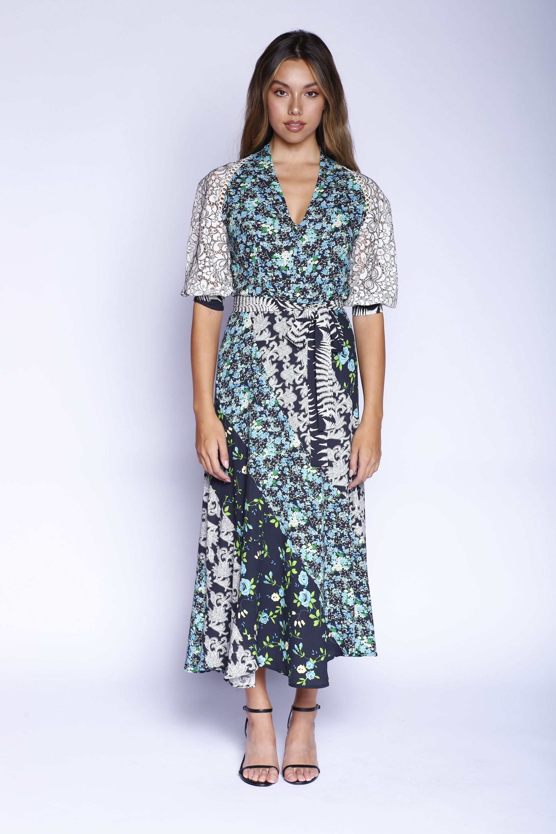 Kevan Hall X VelvetBlue Maxi Swirl Dress Green Multi Floral